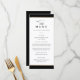 Ce menu de mariage élégant noir et or est simple et polyvalent. Il présente un design chic blanc et noir avec un monogramme, des détails en script, un cadre or simple et un texte éditable formel. Cliquez sur le bouton d'édition pour personnaliser ce design.