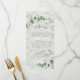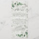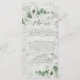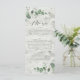 Moderne minimaliste eucalyptus simple élégant menu de mariage, dossier en bois blanc