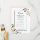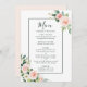 Ce menu mariage présente des fleurs d'aquarelle peintes en rose vif, blanc et vert feuillage avec un cadre rectangulaire. Pour une personnalisation plus avancée de cette conception, cliquez sur le lien "Customiser plus loin".