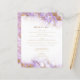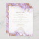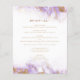 Cet élégant menu mariage moderne comprend une bordure en marbre lavande aquarelle ornée d'un faux papier doré. Le texte personnalisable combine un script de couleur or avec une police serif. L'envers est assorti à la lavande et au marbre doré.