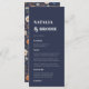 Modifiez facilement les noms de mariée et mariée, la date du mariage et les éléments de menu. Si la taille de police ou les marges doivent être ajustées, veuillez entrer l'outil de conception et apporter des ajustements au cadre de délimitation du texte ou à la taille de police pour mieux convenir à votre disposition. Si vous avez besoin d'aide, nous sommes heureux de vous aider. N'hésitez pas à nous envoyer un message en utilisant Zazzle Conversation. Veuillez compter 24 heures pour une réponse comme nous sommes en Australie. Menu Mariage en terre cuite Dark Boho Navy.