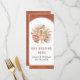 Feuilles tropicaux de palmiers séchés, pampas herbe et protéa fleurs terre cuite arche mariage carte de menu botanique. Ce joli design mariage dispose d'un cadre en arc sur arrière - plan taché de terre cuite. Dans le cadre il y a un bouquet de feuilles de palmiers séchés, des fleurs de protéa et de l'herbe de pampas.