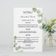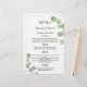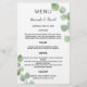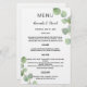 Personnalisez et ajoutez vos noms, votre date et le menu mariage. Arrière - plan blanc, orné de végétation d'eucalyptus, sprigs. Retour : arrière - plan blanc.
