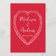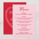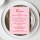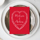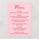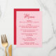 Partagez votre menu de réception avec style grâce à cette carte de menu de mariage fantaisiste conçue pour se coordonner avec du papier à lettres de mariage moderne et ludique. Le devant du menu présente le mot « Menu » affiché dans un script rouge manuscrit avec les détails de votre menu de mariage indiqués ci-dessous sur un fond rose, ce qui en fait un ajout charmant aux réglages de table ou aux tables de réception. Le verso de la carte de menu de mariage présente un cœur rose dessiné à la main entourant les noms des mariés et la date du mariage pour un look cohérent et personnalisé. Parfait pour les mariages de la Saint-Valentin, les mariages de février et les célébrations romantiques, ce menu de réception de mariage personnalisable ajoute de la personnalité tout en aidant les invités à visualiser facilement le menu lors de votre réception.