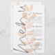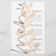 Un prix économique de 5,5" x 8,5", sur un élégant stock LINEN de 110 lb - pour une sensation de luxe à un bon rapport qualité-prix, il est parfait pour les menus, ainsi que des invitations et des programmes, etc. Cette alternative de taille budgétaire est également disponible dans d'autres choix de papier. Le stock de carte SEMI-GLOSS 110 lb est à peu près de la même épaisseur qu'une carte postale, donc fonctionne bien aussi pour les invitations. Le papier FELT 100 lbs est de couleur bouffante, PAS blanc, donc ajoute une touche rustique. Le stock de papier MATTE 80lbs est blanc vif, pour une impression nette, idéal pour vos menus et programmes, tandis que le papier SATIN 80lbs est mince et léger, idéal pour les enceintes. VEUILLEZ NOTER QUE LES ENVELOPPES OPTIONNELLES SONT UN PEU PLUS GRANDES EN TAILLE À 6,75" x 9" env. Ce design moderne a Menu dans élégant script gris tourné vers la gauche et le reste du texte est aligné à droite que vous pouvez facilement personnaliser ainsi que vos noms et date mariage au dos. Les feuilles d'aquarelle d'art en pêche sont teints dans l'arrière - plan des deux côtés.