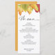 Célébrez la beauté de la saison avec ce menu Mariage "Feuilles d'automne", conçu pour apporter un charme rustique et chaleureux à votre célébration d'automne. Avec des illustrations délicates de feuilles d'automne riches et colorées, en rouge profond, en oranges et en or, ce menu complète parfaitement les mariages de automne avec une atmosphère chaleureuse et romantique. La typographie élégante et l'agencement soigné présentent chaque cours avec raffinement, guidant les clients à travers vos plats soigneusement choisis. Imprimé sur des cartons de qualité supérieure pour une sensation de luxe, il s’agit d’un ajout accrocheur à votre paysage de table qui améliore votre décor et crée une expérience culinaire mémorable pour vos invités.