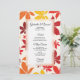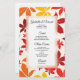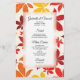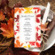 Customisez le menu naturel Bright Fall Leaves Mariage avec les détails du repas que vous allez servir à votre déjeuner de la douche nuptiale de septembre, octobre ou novembre, dîner de réception mariage ou brunch post-mariage avec la salade ou le premier plat, entrée ou deuxième plat et dessert ou troisième plat. Ce menu de mariage d'automne classique est composé de feuilles rouges, orange et jaunes et d'un arrière - plan blanc.