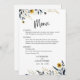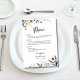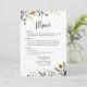 Menu Mariage Fleur sauvage Blue Yellow Watercolor