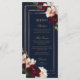 Menu Mariage Fleurie Bleu Nuit Burgundy Blush Sombre