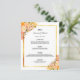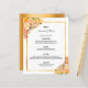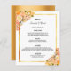 Une carte élégante et glamour pour le menu mariage. Roses roses dorés et verdoyants comme décor. Modèles pour vos noms, date et le menu mariage. Un cadre en faux or et blanc et un arrière - plan blanc élégant. Lettres de couleur noire. Dos : faux or arrière - plan à l'apparence métallique.