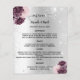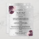 Un menu mariage élégant et glamour. Faux arrière - plan d'apparence argentée, décoré de faux parties scintillant, pétillants, fleurs bordeaux et roses. 1 feuille = 1 menu imprimé bord à bord