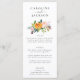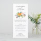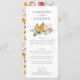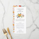 Ce menu mariage de l'automne présente un bouquet d'automne fleuri d'aquarelle et une jolie typographie. Personnalisez le menu mariage de automne avec les noms du couple en haut, puis ajoutez les détails du dîner de réception sous le bouquet floral. Le fond du menu est décoré d'un motif floral rustique qui comprend des roses, des mamans et des papillons aux jolies couleurs automnales comme le bordeaux, la prune, le rose roux et le jaune doré.
