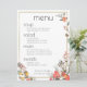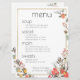 Elégante aquarelle colorée fleurs et cadre doré mariage menu personnalisable modèle.