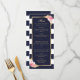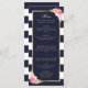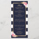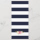 Élégante carte de mariage à fleurs rayées bleu marine et blanc avec aquarelle rose et verdure dorée. Éléments correspondants disponibles.