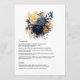 Menu mariage floral bleu marine et or personnalisable selon vos spécificités.