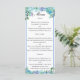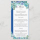 Vintage mais moderne, avec éléments naturels et style romantique doux. Au fond du menu, un arrière - plan bleu saphir époustouflant aux détails floraux luxueux, les noms du couple heureux et leur date de mariage. Design©Rosalind Moore, Cherry Lane Designs.