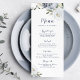Menu Mariage floral botanique poussiéreux bleu floral