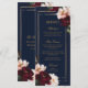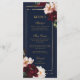 Menu Mariage Floral Burgundy Blush Navy Bleu Sombre