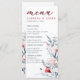 Le menu Fleur Rouge et Bleu Floral Mariage est un menu magnifiquement conçu avec d'élégantes oeuvres florales rouges et bleues sur le côté gauche. Personnalisez avec vos détails de mariage et s'il vous plaît trouver des designs correspondants de mon magasin "DreamHut".