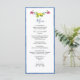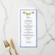 Carte de menu élégante sur le thème d'Amalfi avec des fruits et des fleurs peints à la main communs dans les jardins méditerranéens avec une bordure bleue. Parfait pour un mariage italien de destination