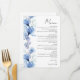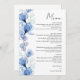 Ces menus modernes bleu transparent à fleurs mariage peuvent être personnalisés avec vos informations dans la typographie moderne. Conçu par Thisisnotme©