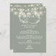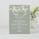 Doté de jolies lampes à cordes et d'illustrations artisanales à fleurs rustiques, personnalisez ce menu vert à la sauge élégant avec vos informations spéciales sur le menu du jour de mariage. Conçu par Thisisnotme©