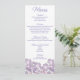 Menu Pastel mauve violet Mariage aux fleurs moelleuses. Ce design est basé sur mon oeuvre originale. Un design moderne avec des graphismes aquarelle peints à la main vous donnera une bonne humeur. Est parfait pour votre mariage élégant.