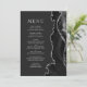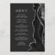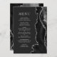 Le bord droit de cet élégant menu mariage moderne comporte une bordure en aquarelle noire ornée d'une parties scintillant en faux argent. Le texte personnalisable combine des polices de serif romaine gris argenté et des polices de cuivre sur un arrière - plan non noir. L'envers présente un design d'agate noir et argent assorti.
