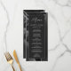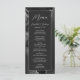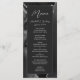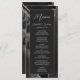 Cet élégant menu mariage moderne comprend un arrière - plan d'agate noir aquarelle orné d'une fausse parties scintillant argentée. Le texte apparaît dans une élégante écriture gris argenté et des polices sans serif sur un rectangle noir en ardoise foncée. La conception de l'agate est répétée à l'envers.