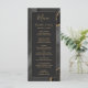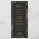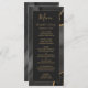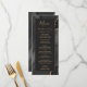 Ce menu mariage moderne et élégant dispose d'un arrière - plan d'agate noir aquarelle orné d'une fausse parties scintillant dorée. Le texte apparaît dans une écriture manuscrite élégante de couleur or et des polices de cuivre sur un rectangle non noir. La conception de l'agate est répétée à l'envers.