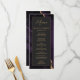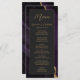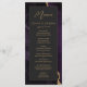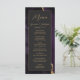 Ce menu mariage moderne et élégant présente un arrière - plan d'agate violet d'aquarelle orné d'une fausse parties scintillant dorée. Le texte apparaît dans une écriture élégante de couleur or et des polices sans serif sur un rectangle noir en ardoise foncée. La conception de l'agate est répétée à l'envers.