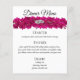 Élevez votre thème mariage avec nos Fuchsia Orchids on White Collection. Ce design captivant mêle le charme intemporel des orchidées fuchsia à une toile de fond blanche, accentuée par des anneaux mariages chatoyants. Créez une expérience de mariage cohésive et élégante avec notre papeterie coordonnée et nos fournitures de fête. Rendez votre mariage inoubliable avec ce symbole d'amour et d'engagement. Il s'agit d'une carte Menu recto verso, avec vos options de dîner et de boissons, customisez-la simplement pour convenir à votre journée spéciale!