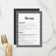 Ajoutez une touche élégante à votre réception de mariage avec cette carte de menu géométrique moderne en noir et blanc. Doté d'une bordure à motifs audacieux et d'une typographie élégante, ce design s'inscrit parfaitement dans les thèmes mariages contemporains. Personnalisez avec vos détails de menu pour créer un look élégant et cohérent pour votre journée spéciale. Parfait pour les mariages minimalistes et modernes qui se concentrent sur des lignes épurées et le raffinement.