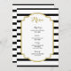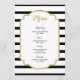 Menu dîner mariage dans élégante rayures noir et blanc motif et détails or, personnalisable avec vos détails et disponible en produits mariages correspondants.