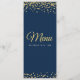 Soirée de mariage élégante Conception de menu avec Gold Faux Parties scintillant Confetti Marine Bleu et texte personnalisé. Impressionnez votre famille et vos amis avec ce design élégant et moderne.