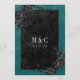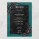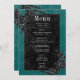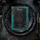 Transportez vos invités dans un monde d'élégance sombre et envoûtante avec notre carte de menu de mariage gothique vintage. Le fond sarcelle foncé vieilli et les roses noires plantent le décor pour un contraste saisissant, tandis que le texte blanc gras émerge de boîtes de texte noires complexes. Le dos est orné de deux vignes entrelacées de roses noires ainsi que des initiales du couple et de la date du mariage, ce qui ajoute une touche d'allure dramatique. Libérez la magie et définissez le ton pour un jour de mariage inoubliable. Cette carte fait partie de la collection Created by Simply Farmhouse Press.