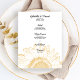 Customisez le joli Menu Mariage Graphique Sunflower Jaune avec la liste des plats que vous pourrez servir à votre déjeuner de douche nuptiale d'été ou d'automne, brunch mariage du dîner de réception de mariage avec la salade ou le premier plat, entrée ou deuxième plat et dessert ou troisième plat. Cet élégant menu mariage à fleurs comprend une numériquement photo florale rehaussée d'une fleur de tournesol à l'arrière - plan blanc.