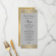 Longue et maigre menu de table de mariage gris fait, avec des graphiques d'un bord motif or dentée, sur le haut et le bas. Personnalisez le texte noir pour votre journée spéciale. Jolie addition à notre mariage Chic Grey et Gold.