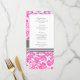 Elégant menu de dîner de mariage dans élégant fuchsia rose chaud, gris et blanc gras et classique floral damask motif vintage, personnalisable avec vos détails de dîner, disponible dans une large gamme de produits mariages assortis.