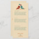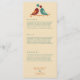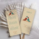 Complétez vos paramètres de table avec ce menu mariage inséparable élégant. Avec une simple illustration de deux oiseaux qui se font face, l'un dans les tons cool et l'autre dans les tons chauds, contre un arrière - plan crème moelleux, ce menu apporte charme et raffinement à votre réception. C’est l’ajout parfait à votre suite de mariages inséparables, en ajoutant un regard coordonné à chaque détail de votre journée spéciale.