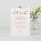 Une carte de menu de mariage minimaliste conçue pour présenter votre dîner de réception de manière claire et élégante. Placée sur un fond ivoire doux avec une typographie rose baie atténuée, la mise en page combine un titre en écriture cursive avec des sections de menu structurées. Chaque plat est disposé pour une lecture facile, permettant aux invités de voir rapidement ce qui est servi. L'équilibre entre l'écriture cursive et les caractères épurés maintient le design raffiné tout en conservant une atmosphère détendue et accessible. Simple et bien organisé, ce menu convient parfaitement à une large gamme de styles de mariage, allant des décors modernes et minimalistes aux décors romantiques et classiques. Il se marie sans effort avec des palettes neutres et un décor doux et discret. Parfait pour les réceptions de mariage, les tables de dîner et d'autres événements où une présentation de menu claire et élég