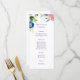 Cette carte de menu mariage présente une bordure supérieure de jolies fleurs aux couleurs violet rose et bleu nichée parmi les feuilles verts. Votre texte personnalisé est en violet violet au milieu. Cette carte de menu est suffisamment polyvalente pour être utilisée pour une variété d'événements, surtout au printemps et en été. Il a des invitations de mariage assorties et d'autres produits mariages dans notre magasin.