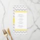 Elégant menu de dîner de mariage dans élégant citron jaune, gris et blanc chevron zigzags rétro motif, personnalisable avec vos détails de dîner, disponible dans une large gamme de produits mariages assortis.