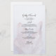 Customisez l'élégant menu Mariage Light Lavender Purple Crystals avec les détails du repas que vous allez servir à votre déjeuner de douche nuptiale zen, brunch post-mariage ou dîner de réception mariage en ajoutant la salade ou le premier plat, entrée ou deuxième plat et dessert ou troisième plat. Personnalisez-le avec les noms de la mariée et du marié, du lieu de l'événement et de la date. Ce menu mariage à thème spécial chakra éthérée personnalisé propose une photographie de fond d'un spécimen de géode minéral à quartz blanc, avec une teinte violette pâle ajoutée et un arrière - plan blanc. Le quartz clair est également connu comme le "guérisseur maître" et la "pierre de puissance" et est dit pour amplifier toute énergie ou intention et fait une amélioration ou un ajout unique à votre décor mariage.