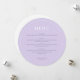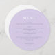 Ajoutez une touche d'élégance moderne à votre table mariage avec ce Menu Mariage Lavender Lilac Lavender Simple Round Modern. Doté d'un arrière - plan violet lavande et d'un cadre délicat en ligne blanche, ce menu rond offre un design épuré et minimaliste qui complète n'importe quel style mariage, que vous planifiez une fête de jardin printanier, une fête de plage d'été, une réunion d'automne confortable ou un mariage d'hiver chic. La palette de couleurs et le design neutres permettent de s'associer facilement à une large gamme de papeterie et de décoration mariages, surtout lorsqu'il est assorti à d'autres objets de la même collection. Entièrement personnalisable en ligne, vous pouvez facilement mettre à jour le texte, les polices et la mise en page pour s'adapter à votre journée spéciale, aucun outil de conception ou d'expérience nécessaire. Faites en sorte que chaque hôte se sente bien organisé tout en conservant sa présentation simple, élégante et cohésive.