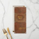 L'avant ressemble à la couverture en cuir d'un vieux livre, et le menu comme il est écrit sur l'une des pages.