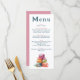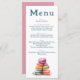 Ce menu de mariage élégant présente une aquarelle ludique illustrant des macarons français colorés, ajoutant une touche de charme parisien et de fantaisie. Le front blanc propre affiche chaque cours dans une police serif moderne, avec des titres rose vif doux pour un accent romantique. L'envers est un rose solide, parfait pour un look cohésif et contemporain. Idéal pour les fêtes de printemps, d'été ou d'inspiration française, ce menu mêle l'esprit artistique et le style minimaliste.