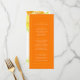 Marigolds menu mariage floral vertical personnalisable. Parfait pour un mariage d'été. Modifiez ce menu de quatre plats avec votre choix de repas et la date et le nom du mariage de marié et marié. D'autres articles correspondants sont disponibles. Image originale de Sarah Trett pour www.mylittleedenweddings.com
