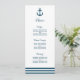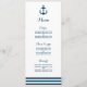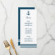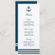 Un menu Mariage moderne sur le thème nautique, avec une illustration d'ancre et des rayures de marine. Peut également être utilisé comme programme de mariage.