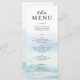 Ajoutez ce menu assorti à votre décor mariage. Cette magnifique collection de modèles de mariage de plage d'aquarelles minimes dispose d'un cadre océanique serein et peint à la main qui capture parfaitement la beauté tranquille de la mer. Avec des vagues fluides et douces dans des tons délicats de bleu et de turquoise, et des polices sobres et élégantes, ce design dégage un sentiment de calme et de sophistication. La simplicité du design le rend chic sans effort, offrant une sensation moderne et intemporelle qui résonnera à tous ceux qui rêvent d'une fête au bord de la plage. Les aquarelles délicates et le style minimaliste créent une atmosphère raffinée et romantique qui complète la beauté naturelle de tout cadre de plage. Parfait pour les couples qui souhaitent allier élégance et charme décontracté d'un mariage côtier, cette collection impressionne sans aucun doute les clients et donne le ton pour un événement mémorable et pittoresque. C’est le choix idéal pour les couples qui veulent une esthétique mariage qui reflète leur amour pour l’océan et la beauté de la simplicité. Voir la collection entière pour plus d'articles correspondants !